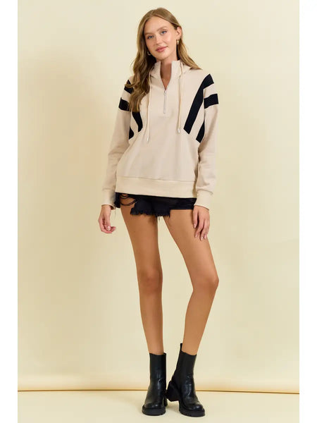 French Terry Colorblock Half Zip Up Hoodie Sweatshirt